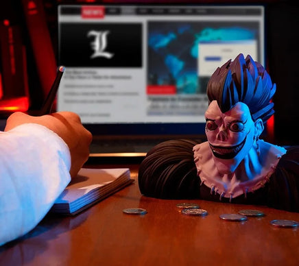 Original owner of the Death Note, Ryuk is a god of death whose entertainment is the life of humans. A lover of apples and games, he delights his life in the presence of Light Yagami and his overweening ambition! Decorate your home with his sly smile with this superb Death Note money bank by ABYstyle.