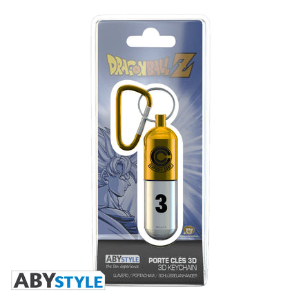 From hovercars to houses, these capsules have the power to contain just about anything in the Dragon Ball universe. Brought to life , this polished metal keychain is a replica from the series and great for storing cash or Senzu Beans. To open, unscrew the bottom of the capsule. The sturdy key ring clamp lets you put this keychain on your backpack, lanyard, or belt loop.