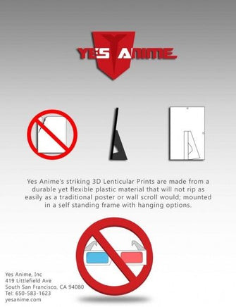Holographic 3 dimensional poster is printed on a plastic-like surface. The images create an astounding animated 3-D look as you pass by. This framed 3D image has a complimentary frame design that includes mounting holes for wall mounting, as well as an easel tab for desktop display.