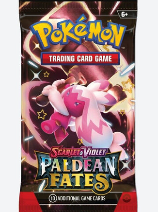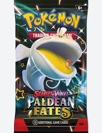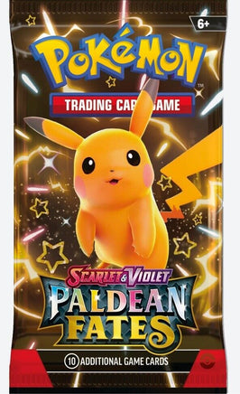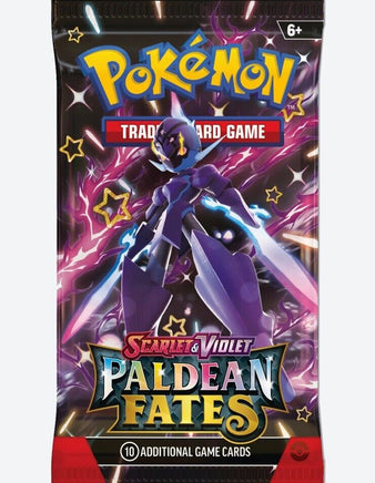 The spotlight glistens on Shiny Pokemon making their fated return to the Pokemon TCG! Shiny Pikachu blazes the path forward as Tinkaton, Ceruledge, Dondozo, and more than 100 other Shiny Pokemon follow. Meanwhile, Great Tusk and Iron Treads appear as Ancient and Future Pokemon ex, and Charizard, Forretress, and Espathra show off their own unique skills as Shiny Tera Pokemon ex. Shed some light and discover sparkling wonders in the Scarlet Violet Paldean Fates expansion!